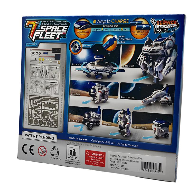 Ignite your child's imagination and curiosity with the 7-in-1 Solar Rechargeable Space Fleet—a thrilling science kit that brings space exploration to life! With seven amazing space-themed creations to build, this kit combines the magic of solar power with endless cosmic fun.