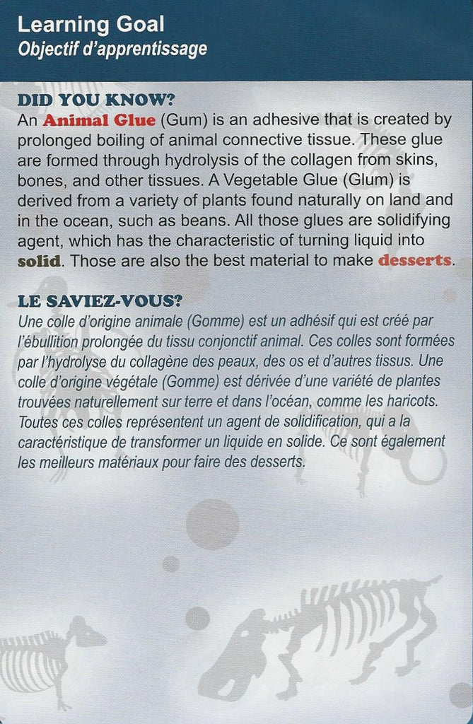 An Animal Glue ( GUM) is an adhesive that is created by prolonged boiling of an animal connective tissue. These glue are formed through hydrolysis of the collagen from skins, bone and other tissues. A Vegetable Glue ( Lum) is derived from a variety of plants found naturally on land and in the ocean, such as beans. All those glues are solidifying agent, which has the characteristic of turning liquid into solid. those are also the best material to make desserts.