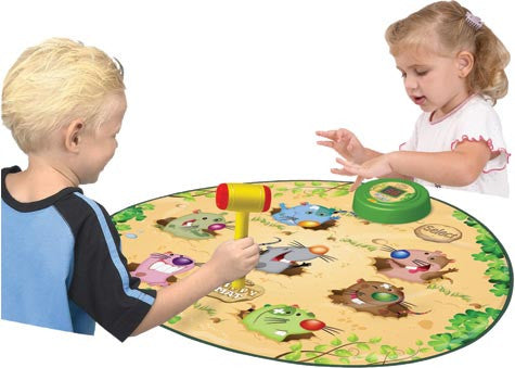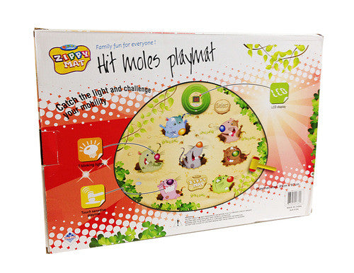 Are you ready for the endless fun? This Hit Moles game from Zippy Mat features an interactive playmat that will have kids and parents alike amused for hours. There are 7 sneaky moles on the mat that light up, your aim is to hit the moles with the hammer and score as many points as possible. With a fun arcade-style tune and 3 levels to choose from you'll easily get caught up in this incredibly addictive game. A great idea for birthday parties, family nights or rainy days inside.