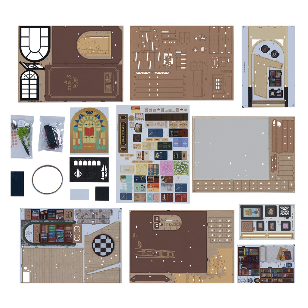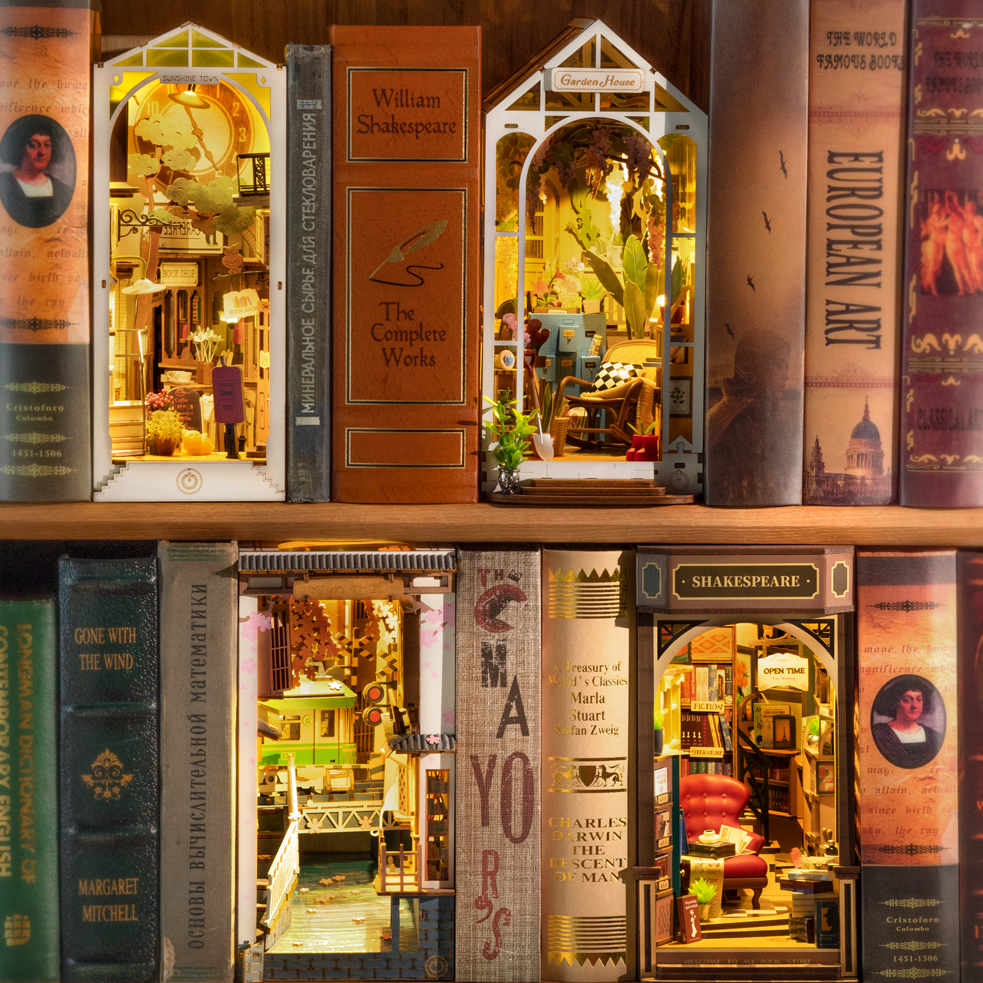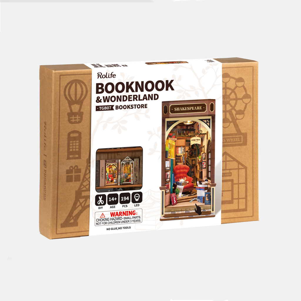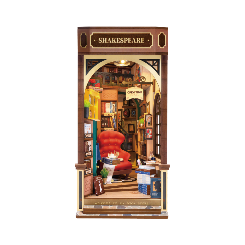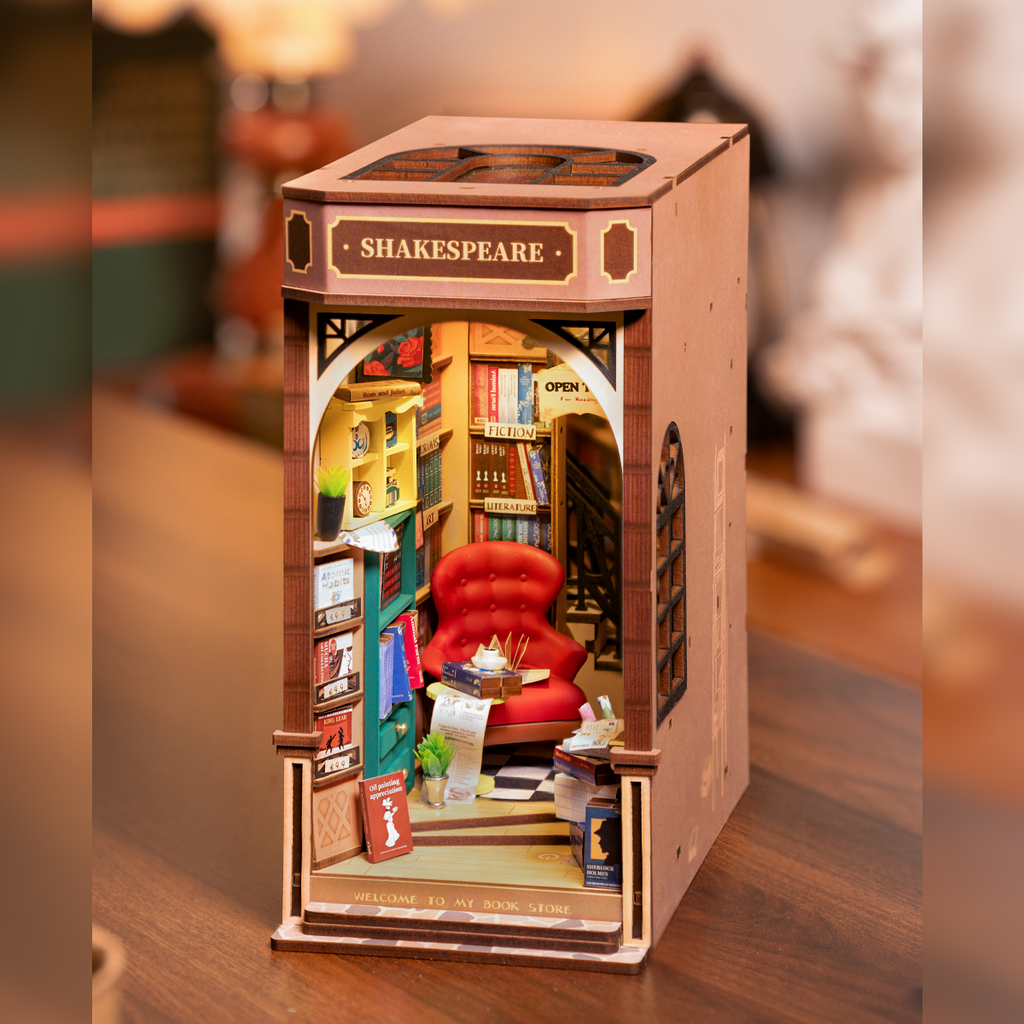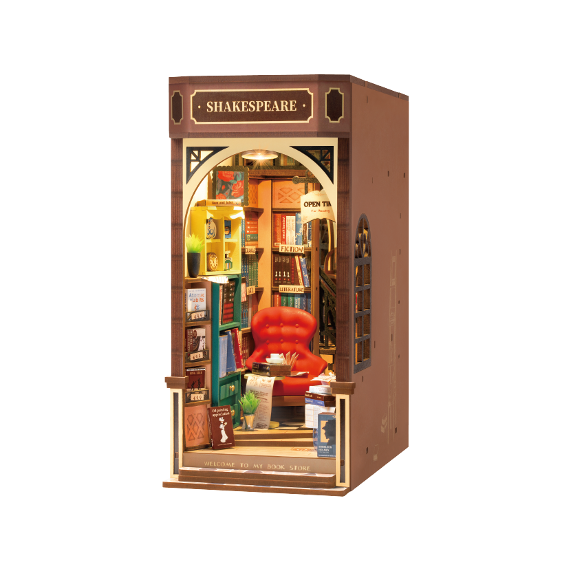 • About: Explore the charm of Rolife Bookstore TGB07 Book Nook Kit, an miniature shelf-insert inspired by the famous 'Shakespeare & Company" Bookstore in France. Picture yourself relaxing on plush red leather sofas and sitting at cozy desks in the quiet reading area. Designed just for book lovers like you, this cozy nook offers a peaceful and joyful reading experience. Assemble your very own mini book store and enjoy the tranquility of reading in this charming corner!