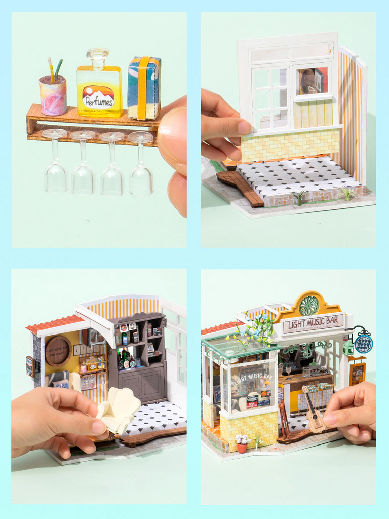 Light Music Bar is a peaceful little bar. You will enjoy its enormous details. Crafting beer and guitar and other mini furniture with your own hands. You will have a relaxing time to finish an art work!