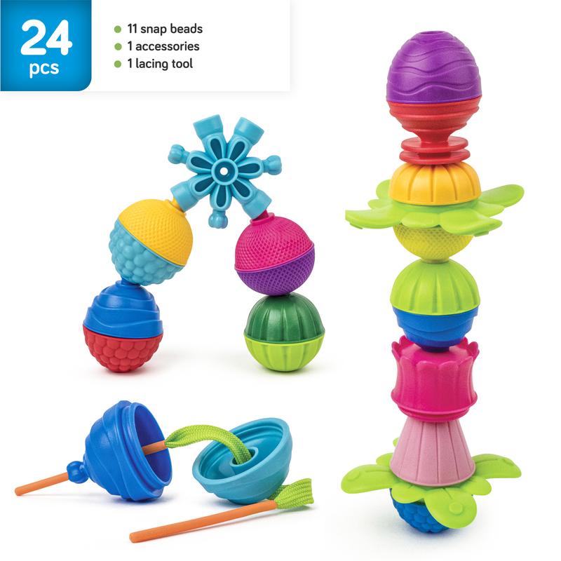 Each set includes 11 large beads, 1 accessory, and 1 lacing stick, totaling 24 pieces. Fuel your child's curiosity and foster their development with Lalaboom's educational benefits today!