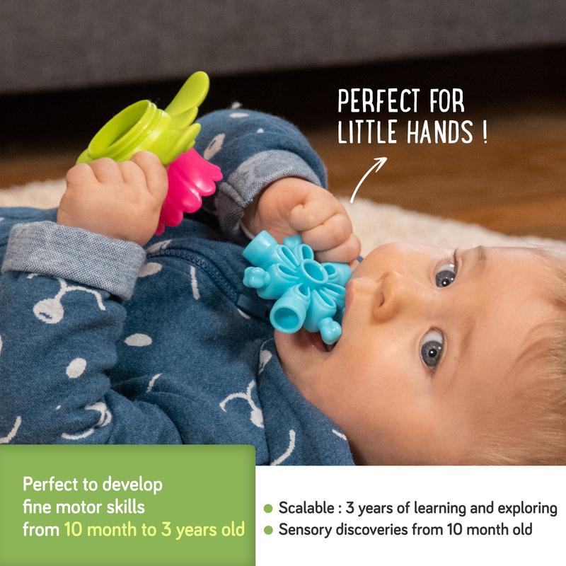 Crafted from durable, BPA and PVC-free materials, our patented French-designed toy is dishwasher-safe, ensuring hassle-free maintenance. At 5 cm in diameter, it's perfectly sized for little hands.